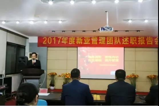2018年1月28日,新亚公司在行政办公楼培训室顺利召开了2017年度管理团队述职报告会,举行了2018年目标责任状签订仪式。公司组长以上干部及职能部门的部分管理人员,代表745名员工,共同见证了这一盛会。会议由人力资源总监彭俤主持。