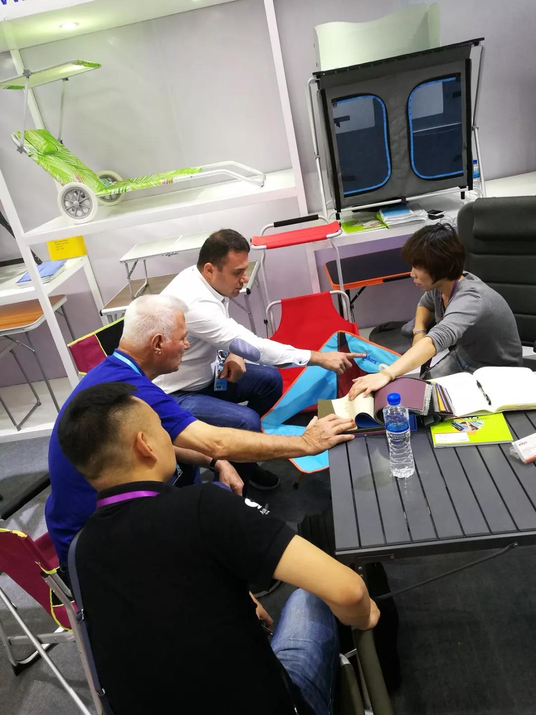 展会最后一天,很多的国外客商都已经离开展馆回国去了。就在我们打包样品装箱的时候,来了2位客商,看起来是一对夫妻,对我们的产品非常感兴趣。我们的工作人员立即停下手里的活来接待客商,耐心的为客商讲解我们的产品特性,给客商提供色板以供参考,并彼此留下联系方式以便以后联系。