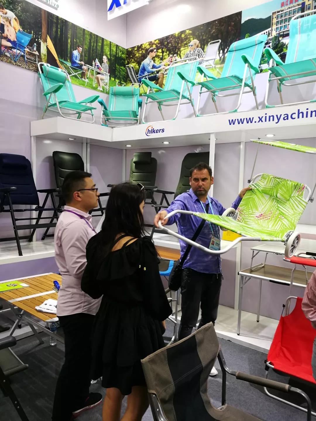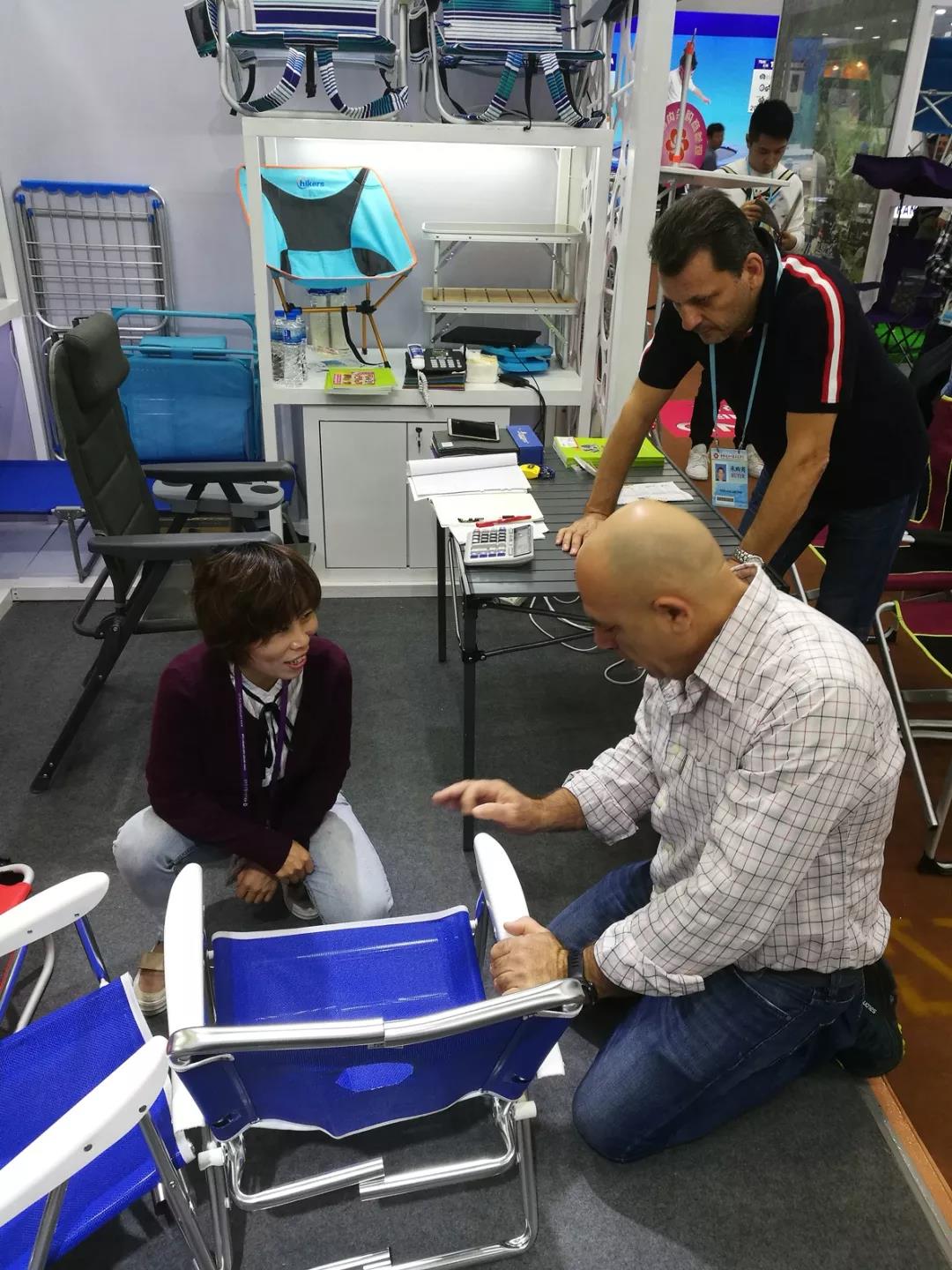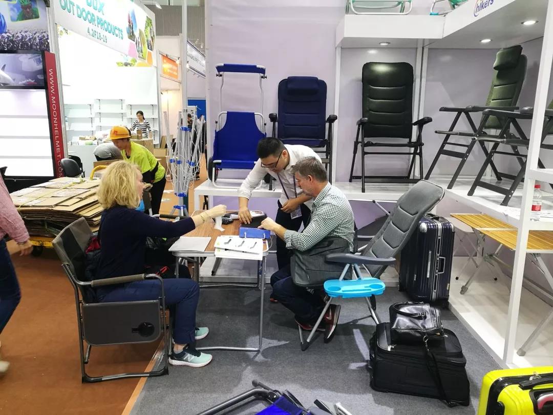 10月底的广州秋高气爽、气候宜人,第124届秋季广交会三期如约举行。新亚公司参会人员经过1000多公里的长途奔波按计划到达琶洲展馆,经过3个多小时紧张而精心的准备,从公司总部运送过来的样品一个个被摆放在恰当的位置。从展会现场来看,其他参展商用的谈判桌和谈判椅都是组委会派发下来的,没有任何特点;而我们展位上的谈判桌和谈判椅却是我们公司自己生产的产品,不仅美观、实用,而且别致、与众不同,很多经过展位的客商都禁不住停下来摸一摸,有人甚至会坐下来体验一下。
