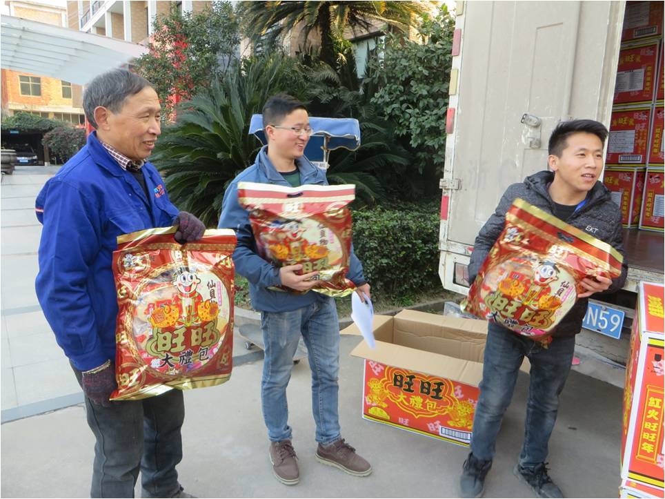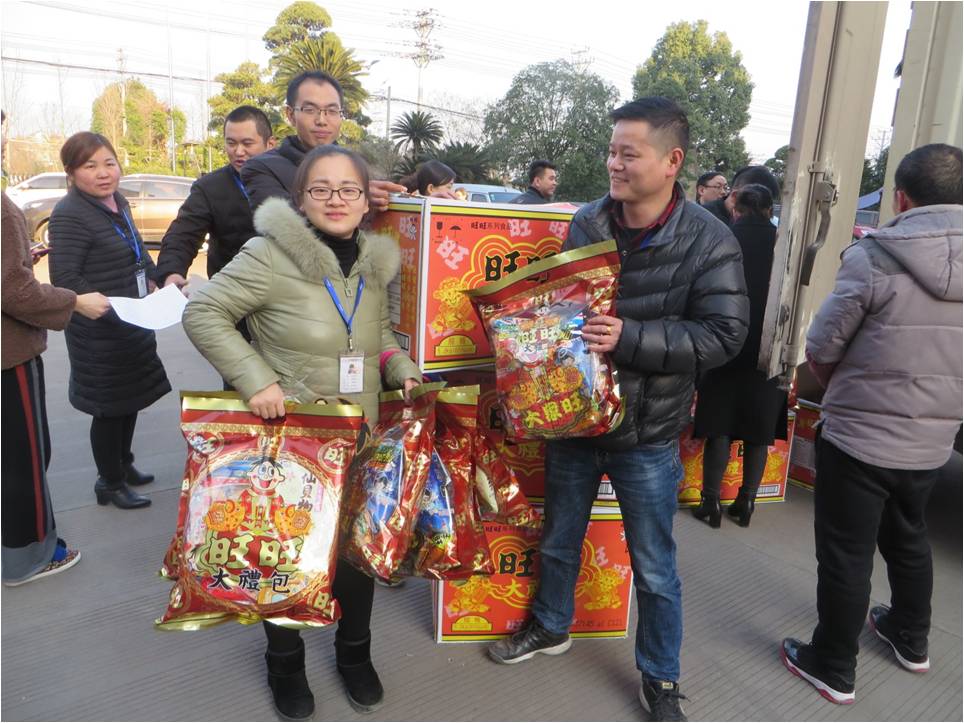 发放过年礼品。