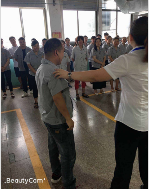 ▲实操:给员工A带好耳机后,让员工B在两米处喊他的名字,员工A表示听不到